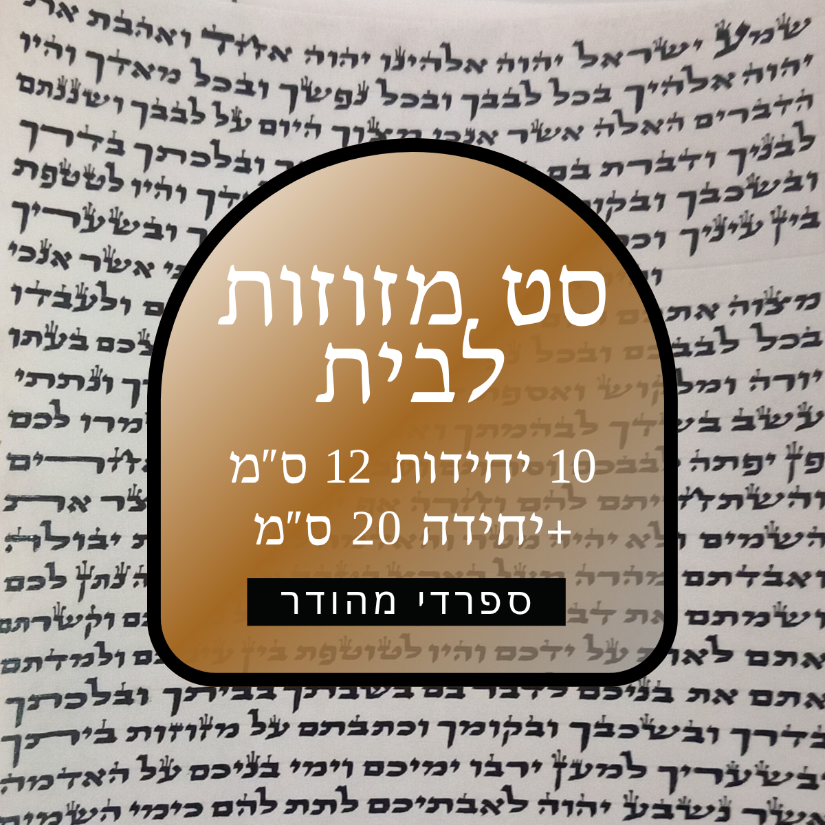 לגבי: קלפי מזוזה – סט קלפי מזוזות מהודרת – 10 קלפי מזוזות גודל 12' + מזוזה גודל 20 – כתב ספרדי – לאחר הגהה ובדיקת מחשב