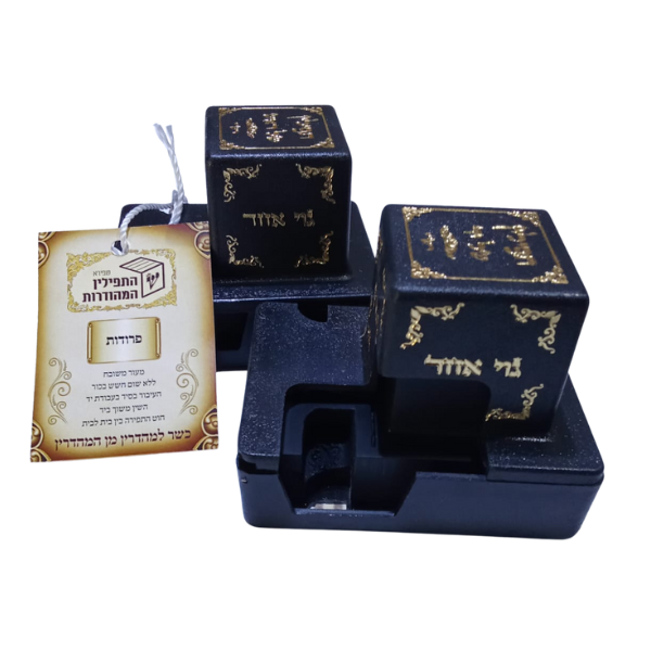 לגבי: בתי תפילין מהודרים – סט של 5 – פרודות מבהמה גסה, נוסח אשכנזי | איכותיות – פרוד מלא + בתי פלסטיק להגנה – תפילין שפירא