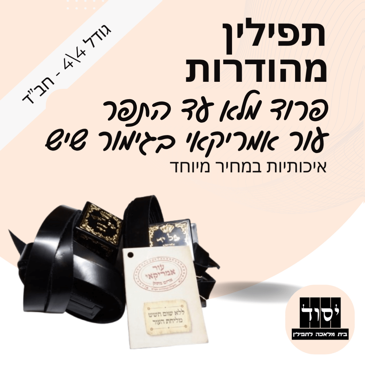 • פרשיות תפילין חב"ד רחבות ומהודרות – כולל כל התיוגים והעוקצים, כולל חלוקת שם השם, מסופר ירא שמים בעל תעודת סופר בתוקף ממוסד מוכר.