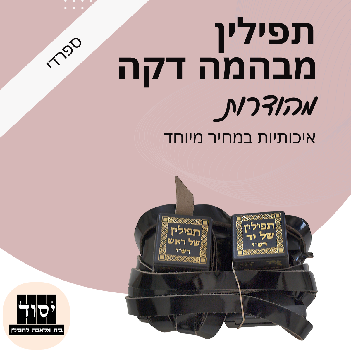 לגבי: תפילין בהמה דקה – מהודרות בפרוד מלא עם פרשיות ספרדיות ורצועות עבודות יד עבות 15 מ"מ